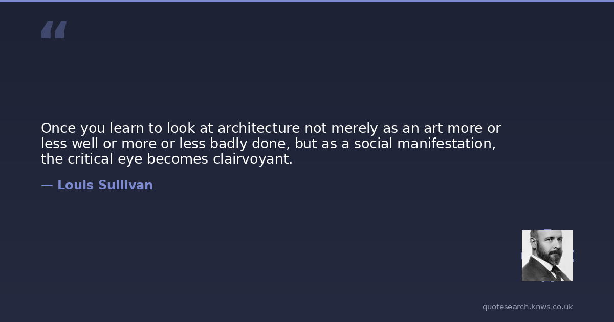 Once you learn to look at architecture not merely as an art more or less well or more or less badly done, but as a social manifestation, the critical eye becomes clairvoyant.