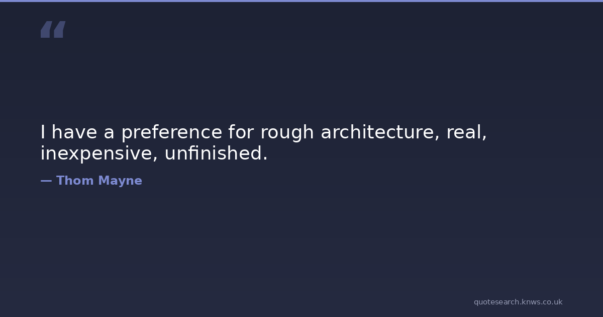 I have a preference for rough architecture, real, inexpensive, unfinished.