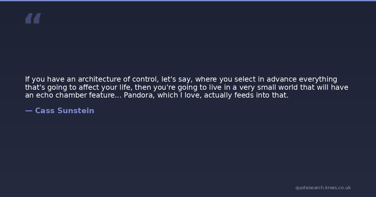 If you have an architecture of control, let's say, where you select in advance everything that's going to affect your life, then you're going to live in a very small world that will have an echo chamber feature... Pandora, which I love, actually feeds into that.