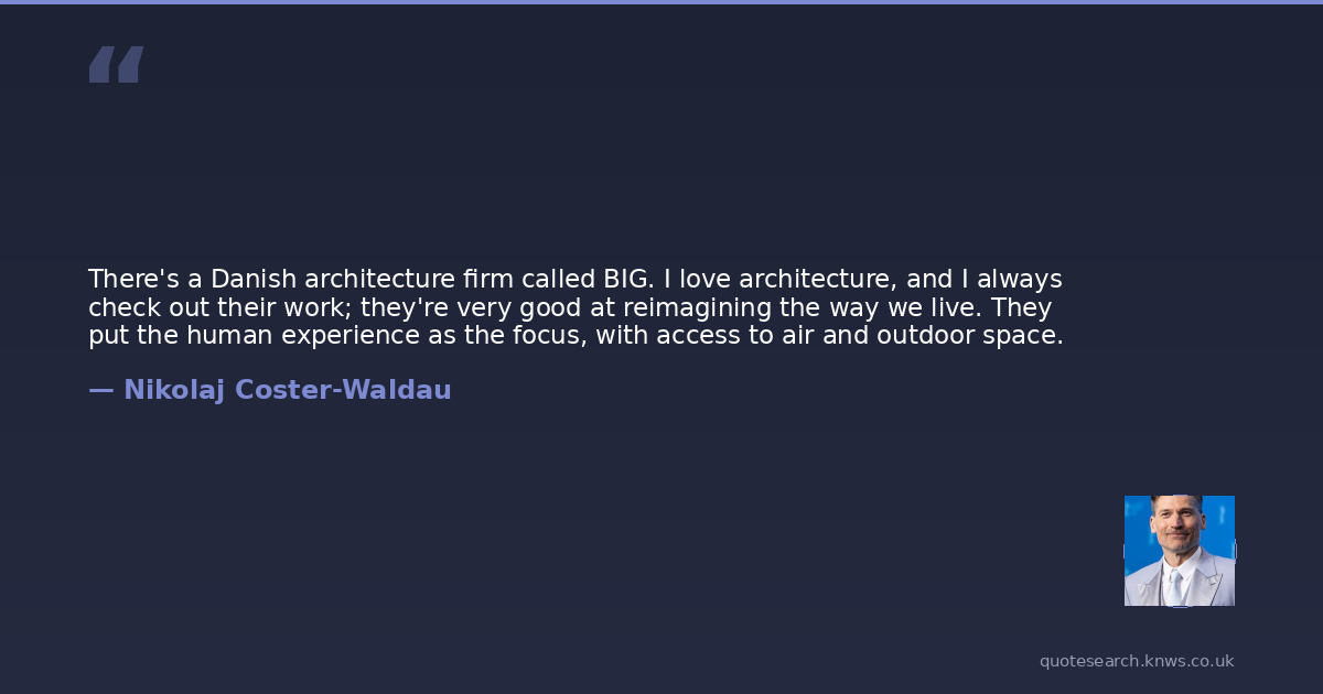 There's a Danish architecture firm called BIG. I love architecture, and I always check out their work; they're very good at reimagining the way we live. They put the human experience as the focus, with access to air and outdoor space.