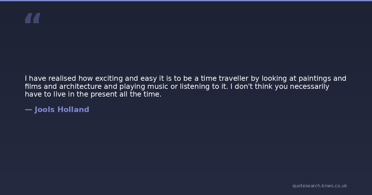 I have realised how exciting and easy it is to be a time traveller by looking at paintings and films and architecture and playing music or listening to it. I don't think you necessarily have to live in the present all the time.