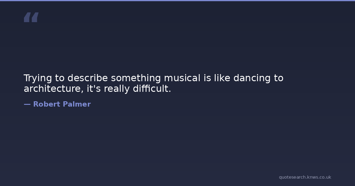 Trying to describe something musical is like dancing to architecture, it's really difficult. Trying Difficult Like Download Image Share on X Share on Facebook Copy Link