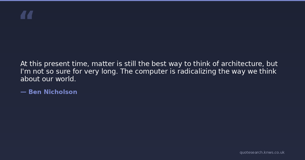 At this present time, matter is still the best way to think of architecture, but I'm not so sure for very long. The computer is radicalizing the way we think about our world.
