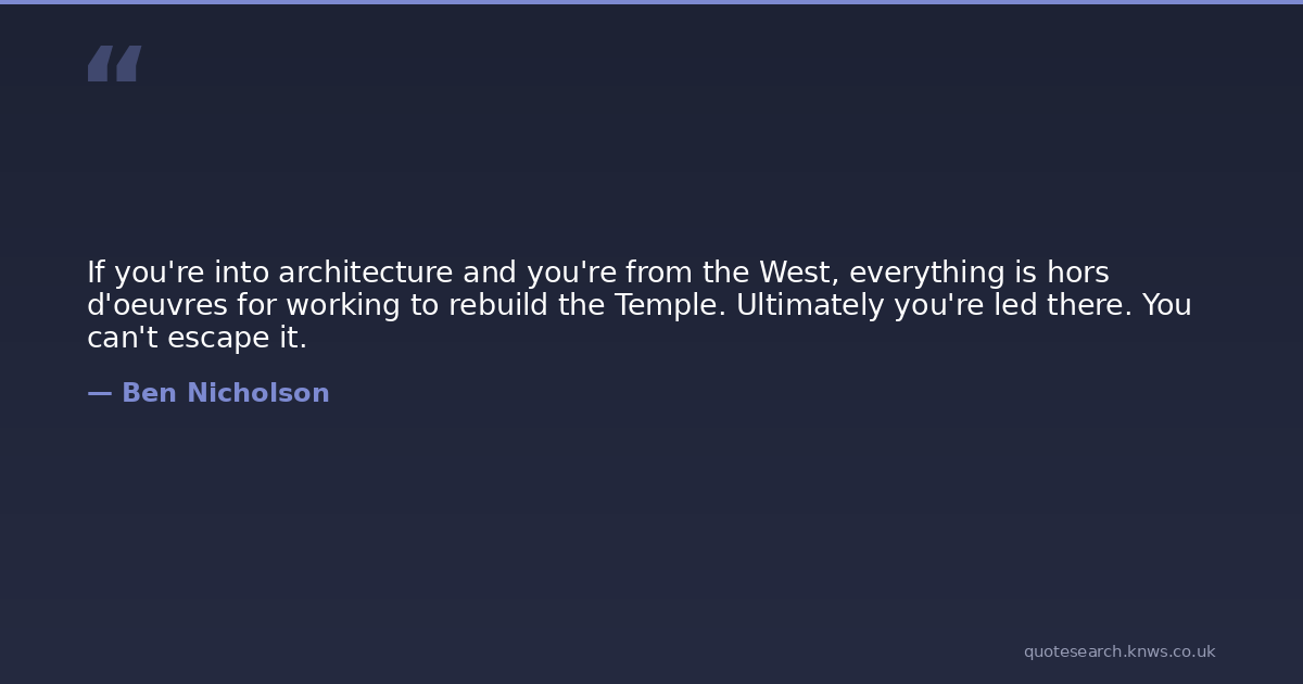 If you're into architecture and you're from the West, everything is hors d'oeuvres for working to rebuild the Temple. Ultimately you're led there. You can't escape it.