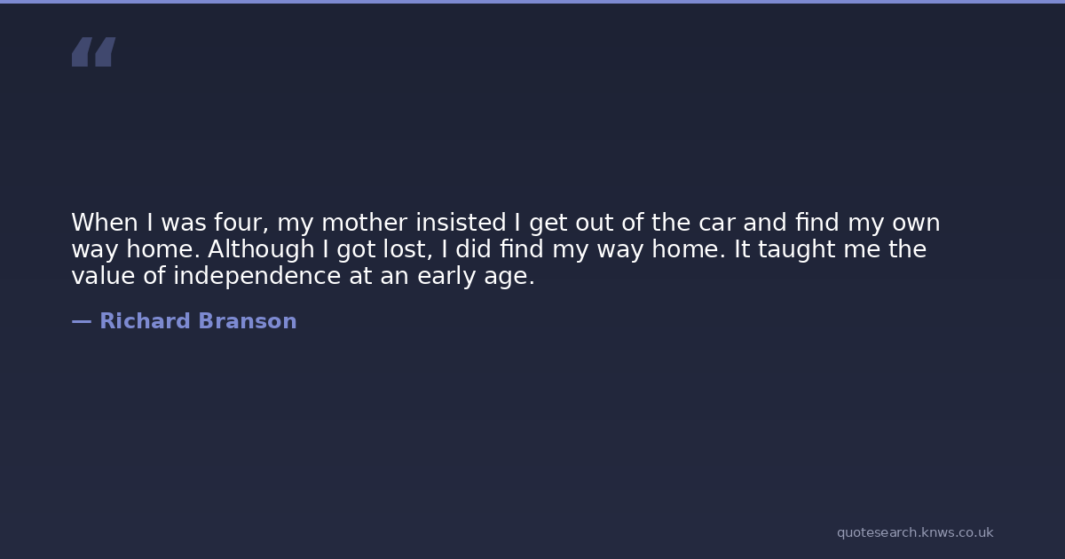 When I was four, my mother insisted I get out of the car and find my own way home. Although I got lost, I did find my way home. It taught me the value of independence at an early age.