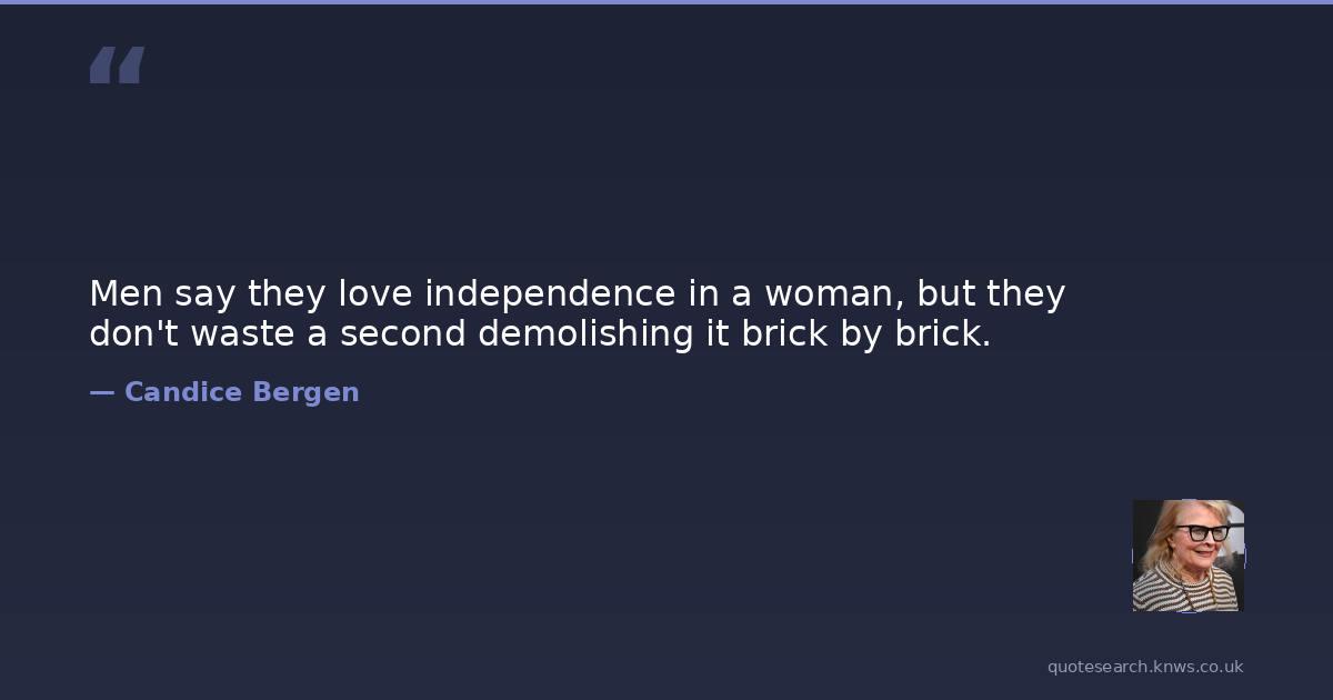 Men say they love independence in a woman, but they don't waste a second demolishing it brick by brick.