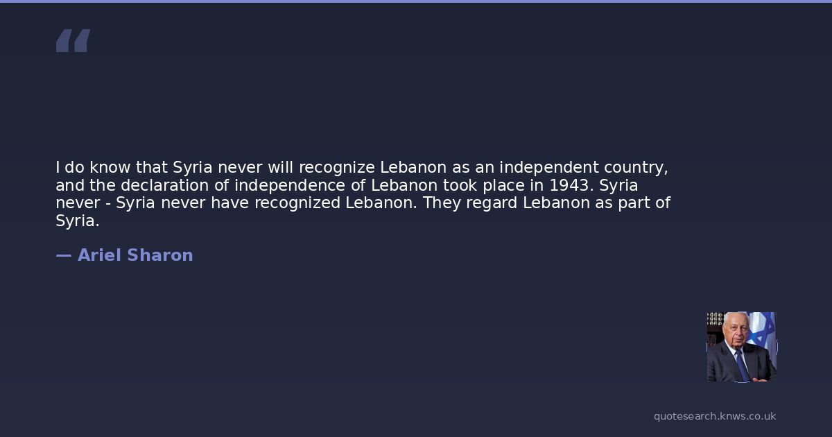 I do know that Syria never will recognize Lebanon as an independent country, and the declaration of independence of Lebanon took place in 1943. Syria never - Syria never have recognized Lebanon. They regard Lebanon as part of Syria.