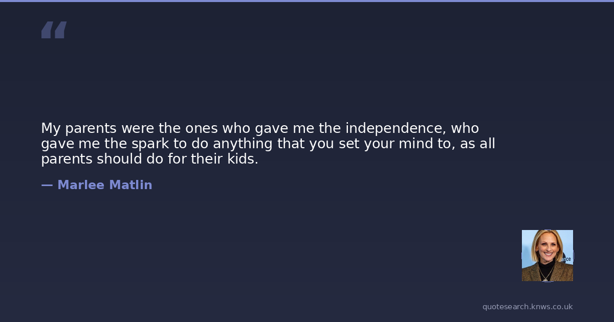 My parents were the ones who gave me the independence, who gave me the spark to do anything that you set your mind to, as all parents should do for their kids.