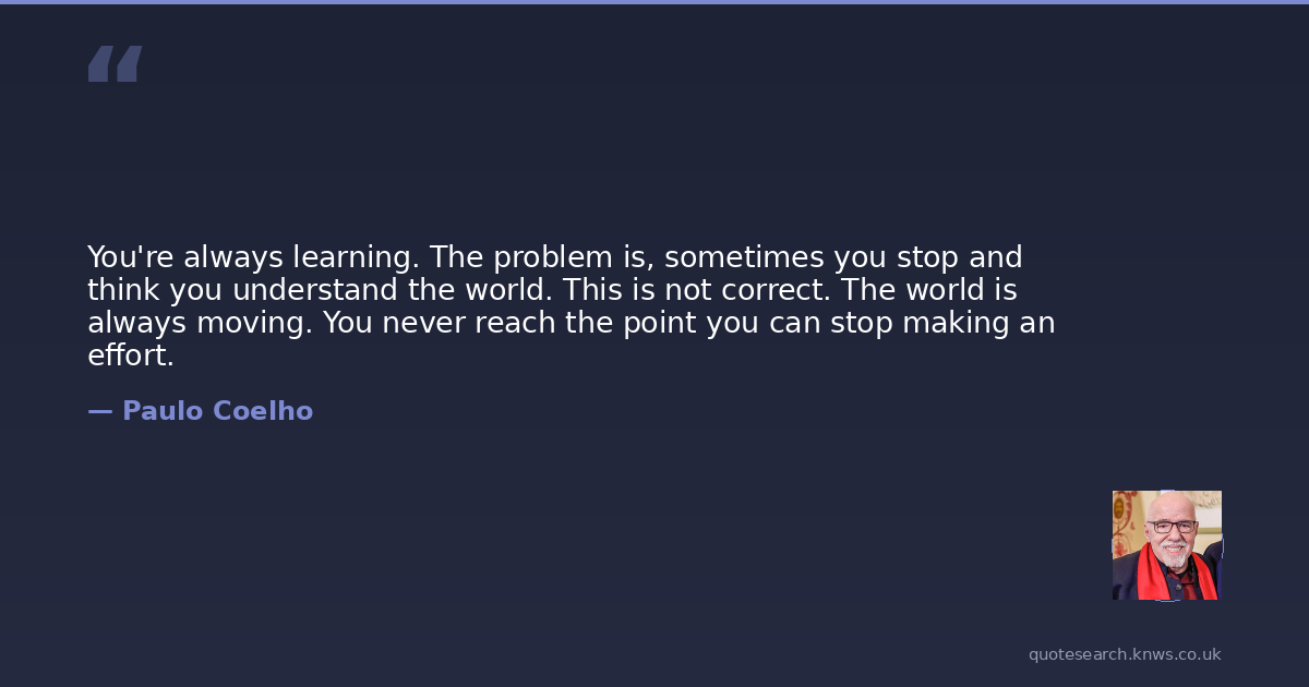 You're always learning. The problem is, sometimes you stop and think you understand the world. This is not correct. The world is always moving. You never reach the point you can stop making an effort.