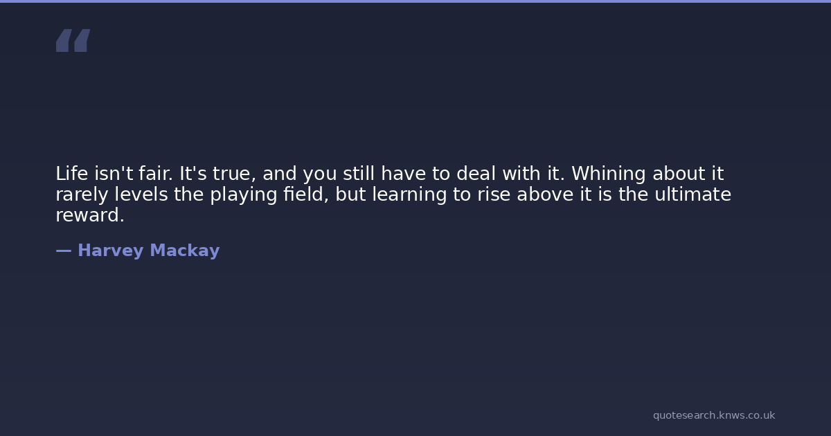 Life isn't fair. It's true, and you still have to deal with it. Whining about it rarely levels the playing field, but learning to rise above it is the ultimate reward.