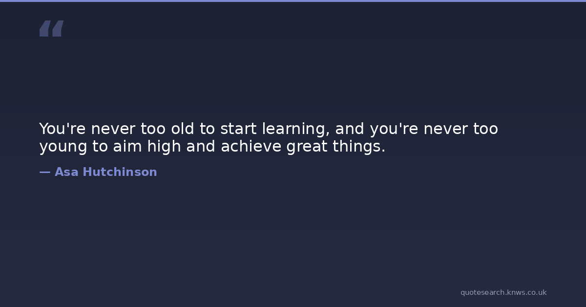 You're never too old to start learning, and you're never too young to aim high and achieve great things.