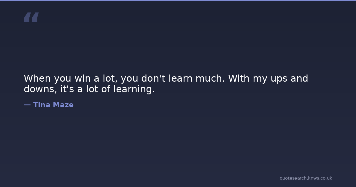 When you win a lot, you don't learn much. With my ups and downs, it's a lot of learning. Win Learn You Download Image Share on X Share on Facebook Copy Link
