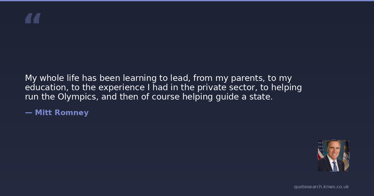 My whole life has been learning to lead, from my parents, to my education, to the experience I had in the private sector, to helping run the Olympics, and then of course helping guide a state.