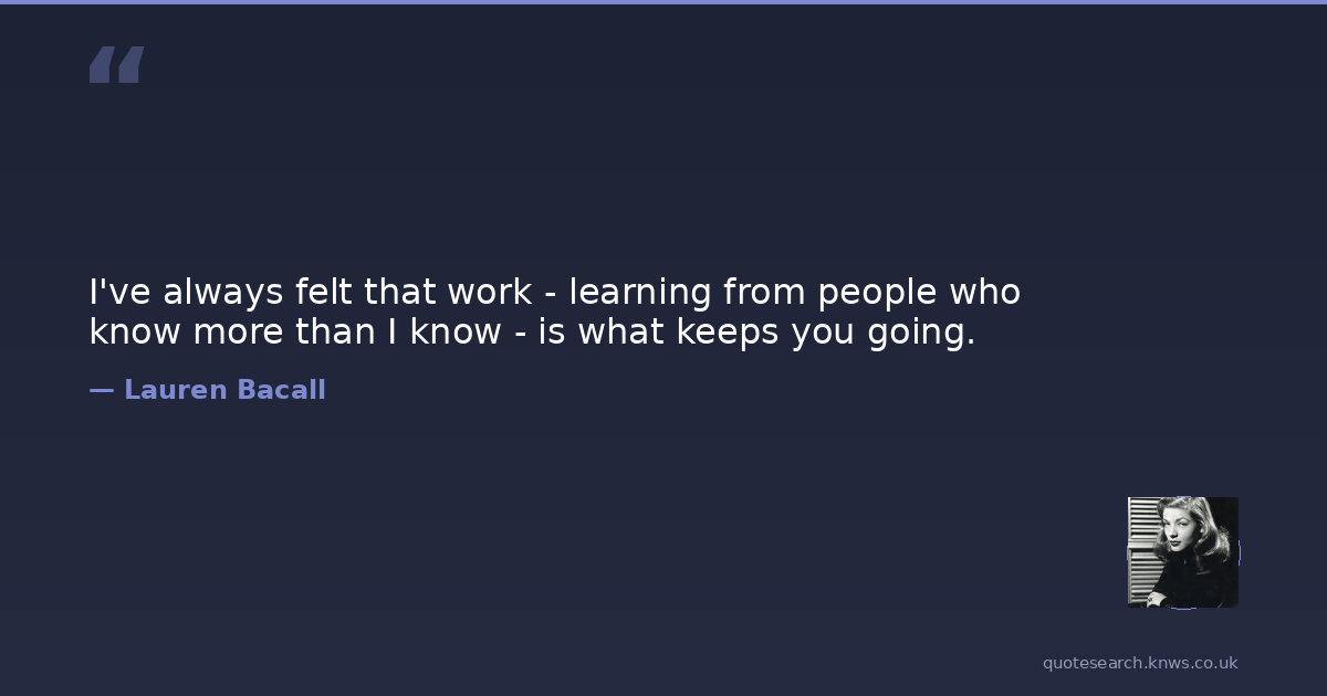 I've always felt that work - learning from people who know more than I know - is what keeps you going.