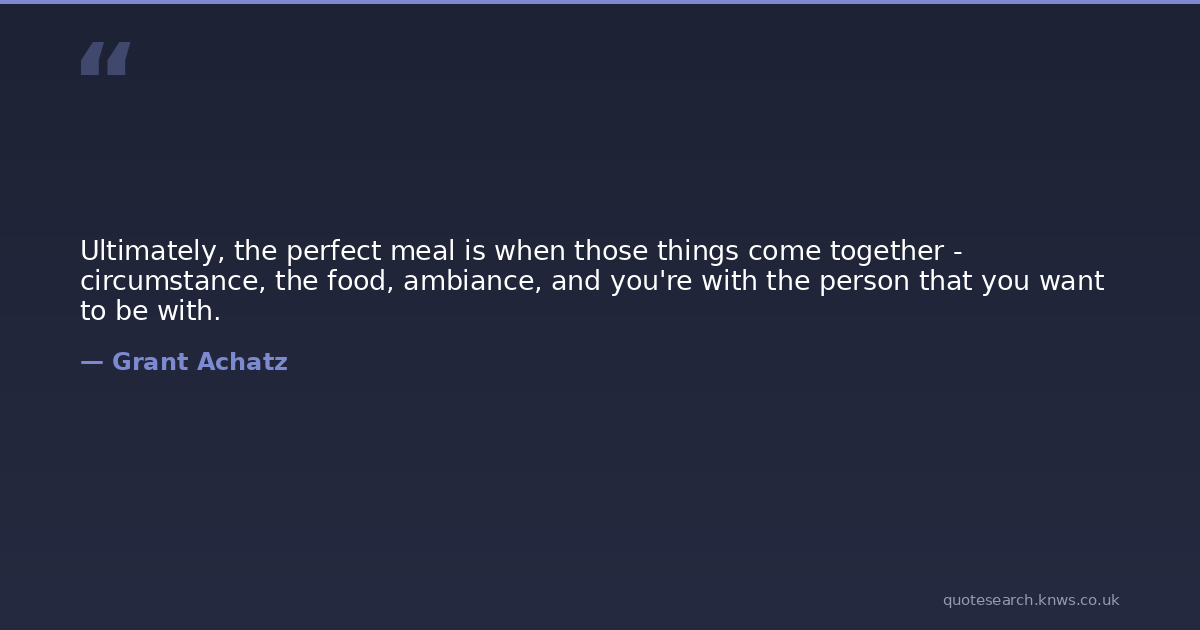Ultimately, the perfect meal is when those things come together - circumstance, the food, ambiance, and you're with the person that you want to be with.