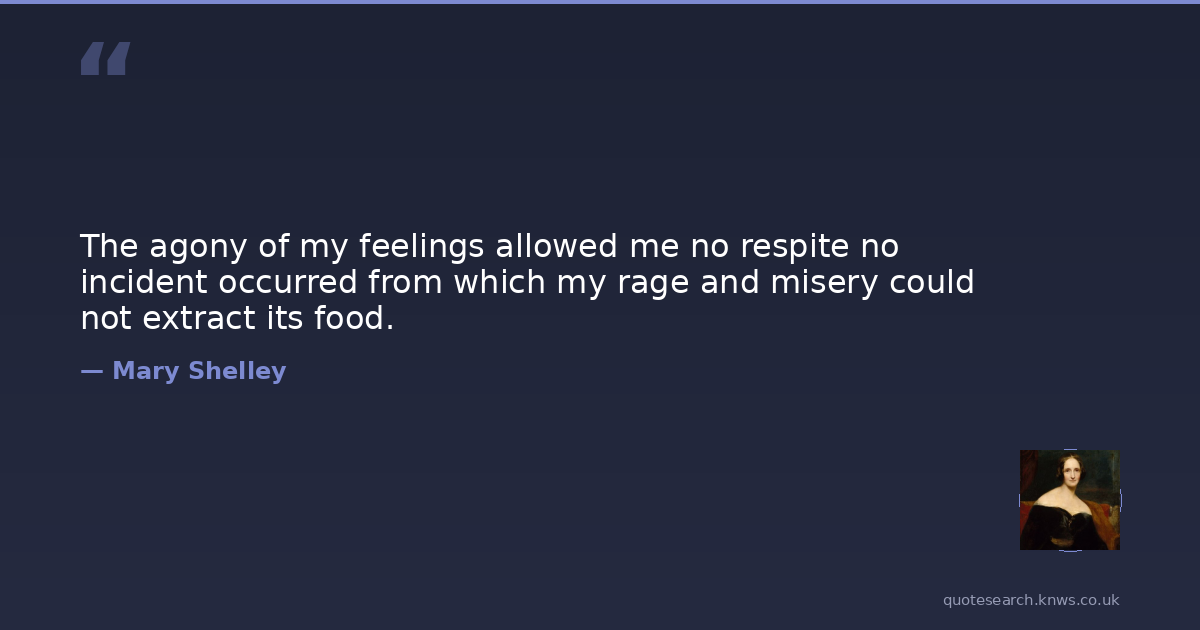 The agony of my feelings allowed me no respite no incident occurred from which my rage and misery could not extract its food.