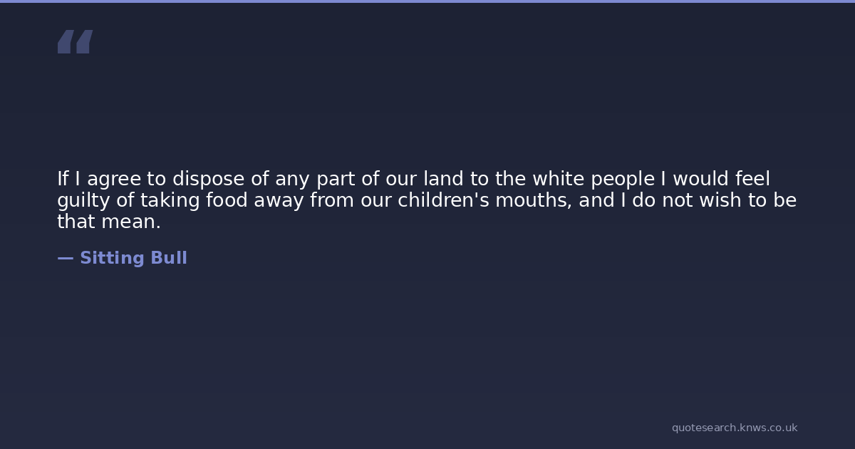 If I agree to dispose of any part of our land to the white people I would feel guilty of taking food away from our children's mouths, and I do not wish to be that mean.