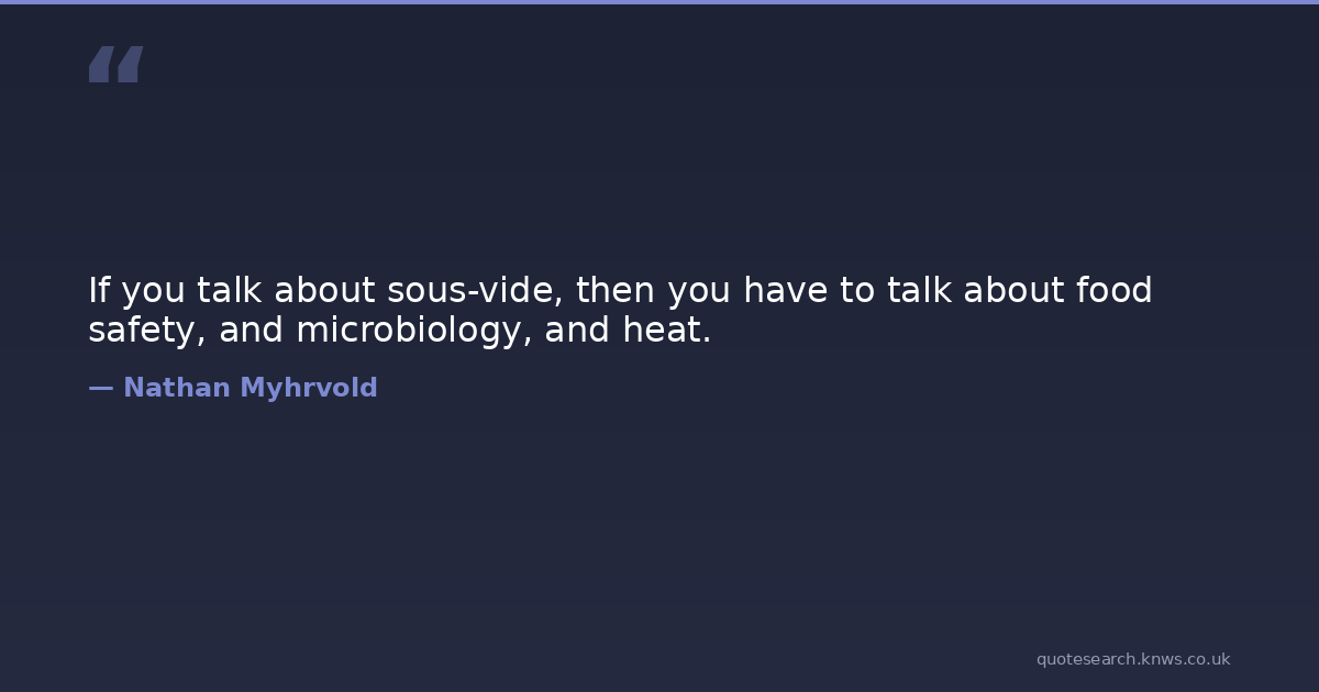 If you talk about sous-vide, then you have to talk about food safety, and microbiology, and heat.