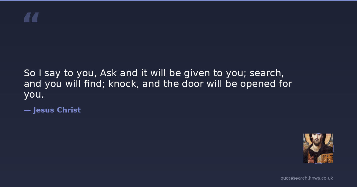 So I say to you, Ask and it will be given to you; search, and you will find; knock, and the door will be opened for you.