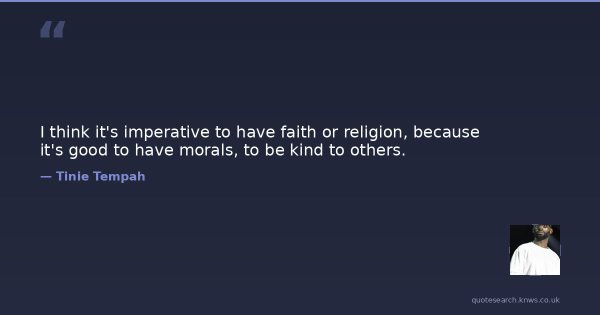 I think it's imperative to have faith or religion, because it's good to have morals, to be kind to others.