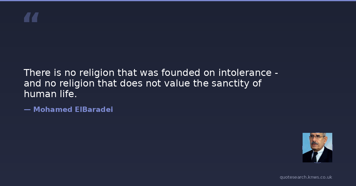 There is no religion that was founded on intolerance - and no religion that does not value the sanctity of human life.