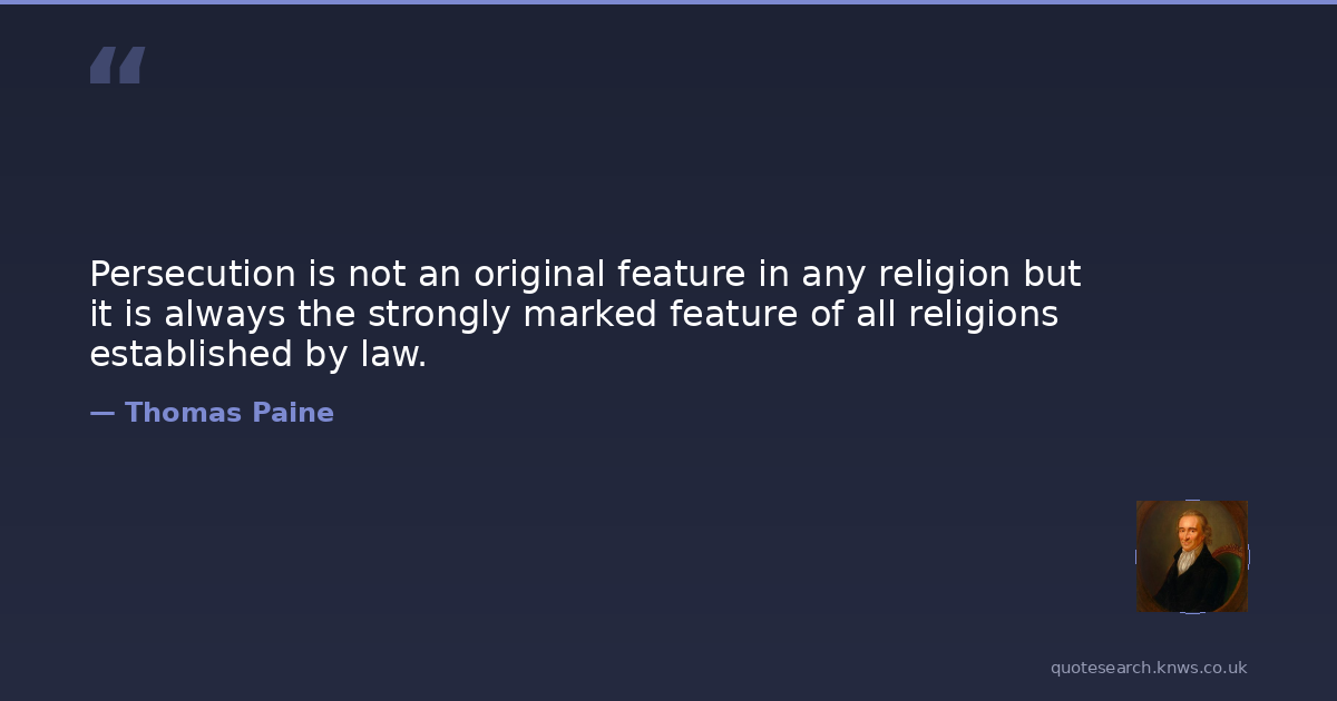 Persecution is not an original feature in any religion but it is always the strongly marked feature of all religions established by law.