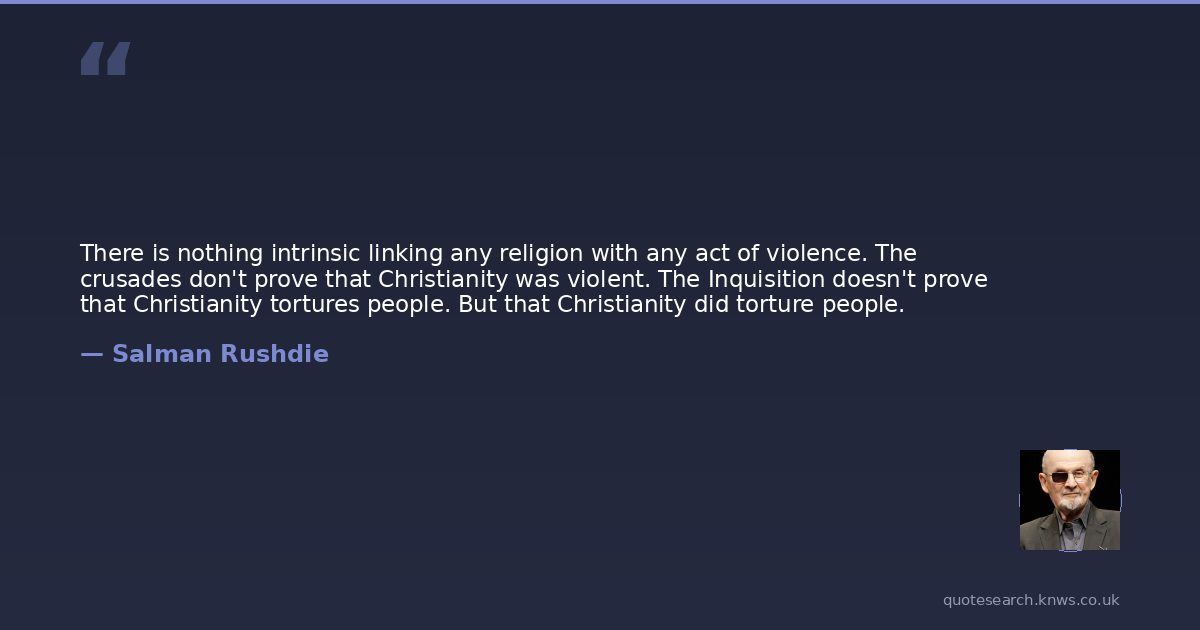 There is nothing intrinsic linking any religion with any act of violence. The crusades don't prove that Christianity was violent. The Inquisition doesn't prove that Christianity tortures people. But that Christianity did torture people.