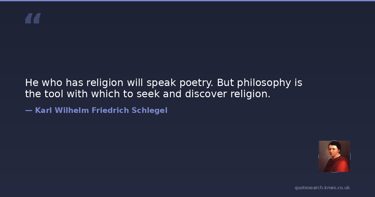 He who has religion will speak poetry. But philosophy is the tool with which to seek and discover religion.