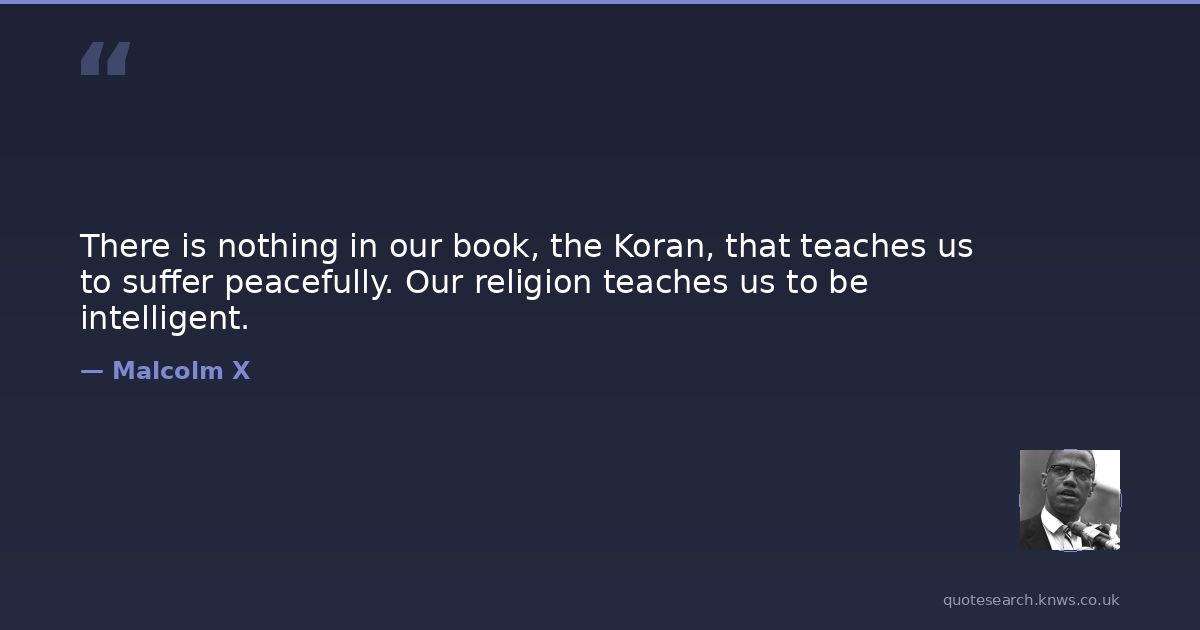 There is nothing in our book, the Koran, that teaches us to suffer peacefully. Our religion teaches us to be intelligent.