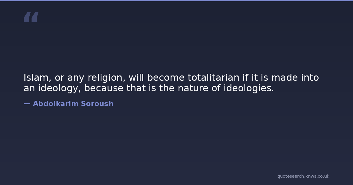 Islam, or any religion, will become totalitarian if it is made into an ideology, because that is the nature of ideologies.