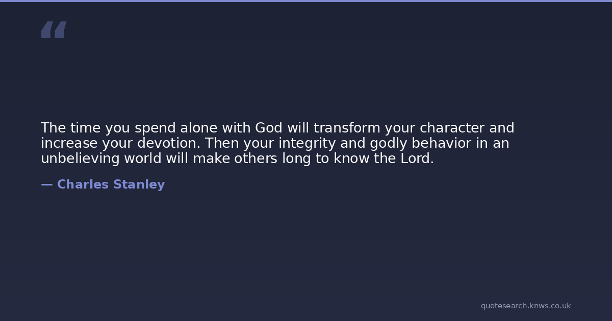 The time you spend alone with God will transform your character and increase your devotion. Then your integrity and godly behavior in an unbelieving world will make others long to know the Lord.