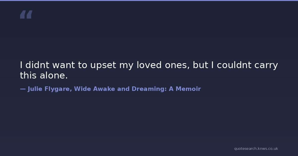 I didnt want to upset my loved ones, but I couldnt carry this alone.