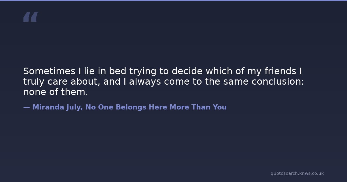 Sometimes I lie in bed trying to decide which of my friends I truly care about, and I always come to the same conclusion: none of them.