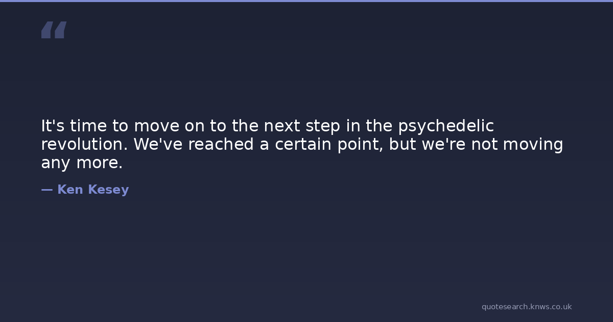 It's time to move on to the next step in the psychedelic revolution. We've reached a certain point, but we're not moving any more.