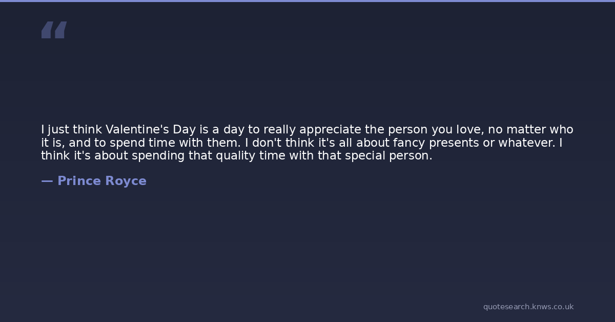 I just think Valentine's Day is a day to really appreciate the person you love, no matter who it is, and to spend time with them. I don't think it's all about fancy presents or whatever. I think it's about spending that quality time with that special person.