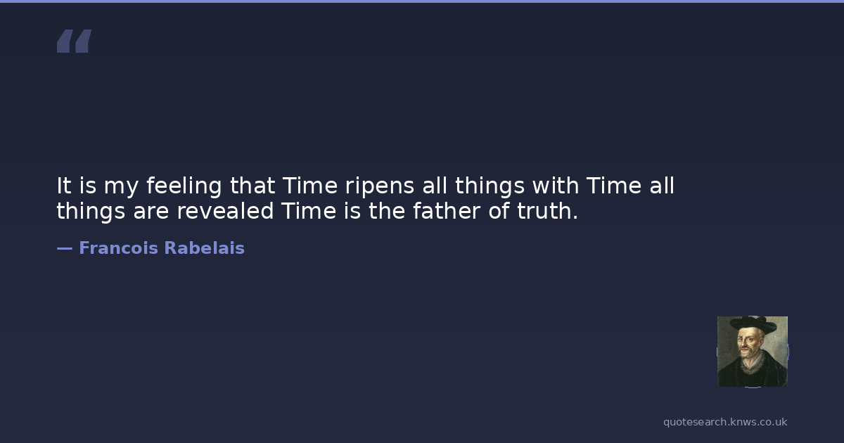 It is my feeling that Time ripens all things with Time all things are revealed Time is the father of truth.