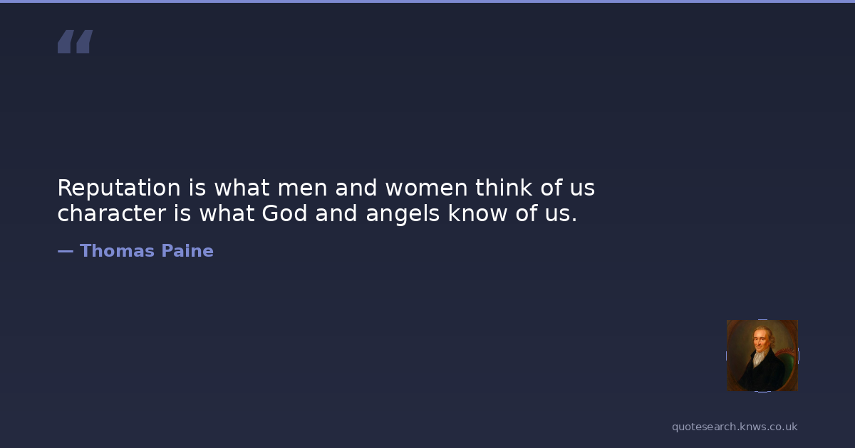 Reputation is what men and women think of us character is what God and angels know of us.