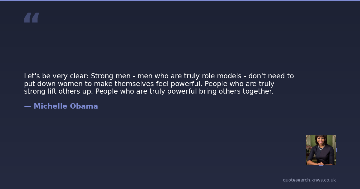 Let's be very clear: Strong men - men who are truly role models - don't need to put down women to make themselves feel powerful. People who are truly strong lift others up. People who are truly powerful bring others together.