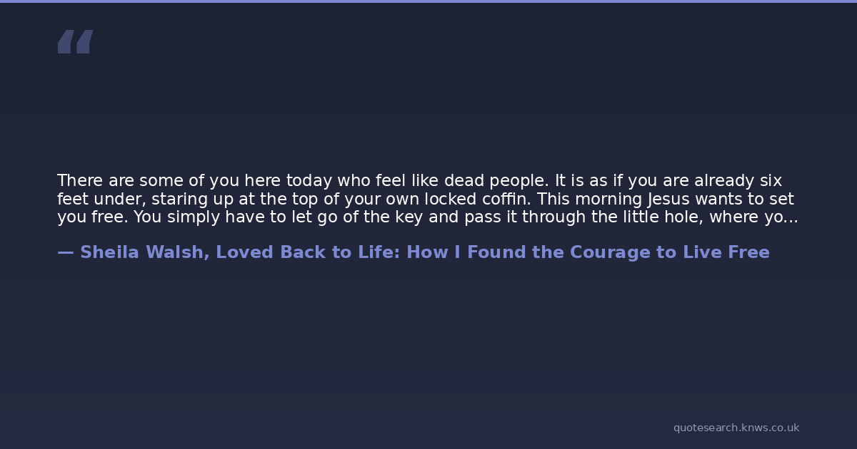 There are some of you here today who feel like dead people. It is as if you are already six feet under, staring up at the top of your own locked coffin. This morning Jesus wants to set you free. You simply have to let go of the key and pass it through the little hole, where you see a tiny shaft of light.