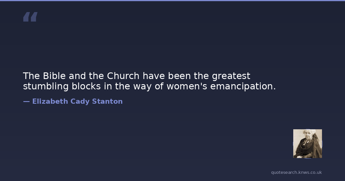 The Bible and the Church have been the greatest stumbling blocks in the way of women's emancipation.