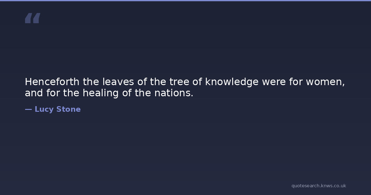 Henceforth the leaves of the tree of knowledge were for women, and for the healing of the nations.