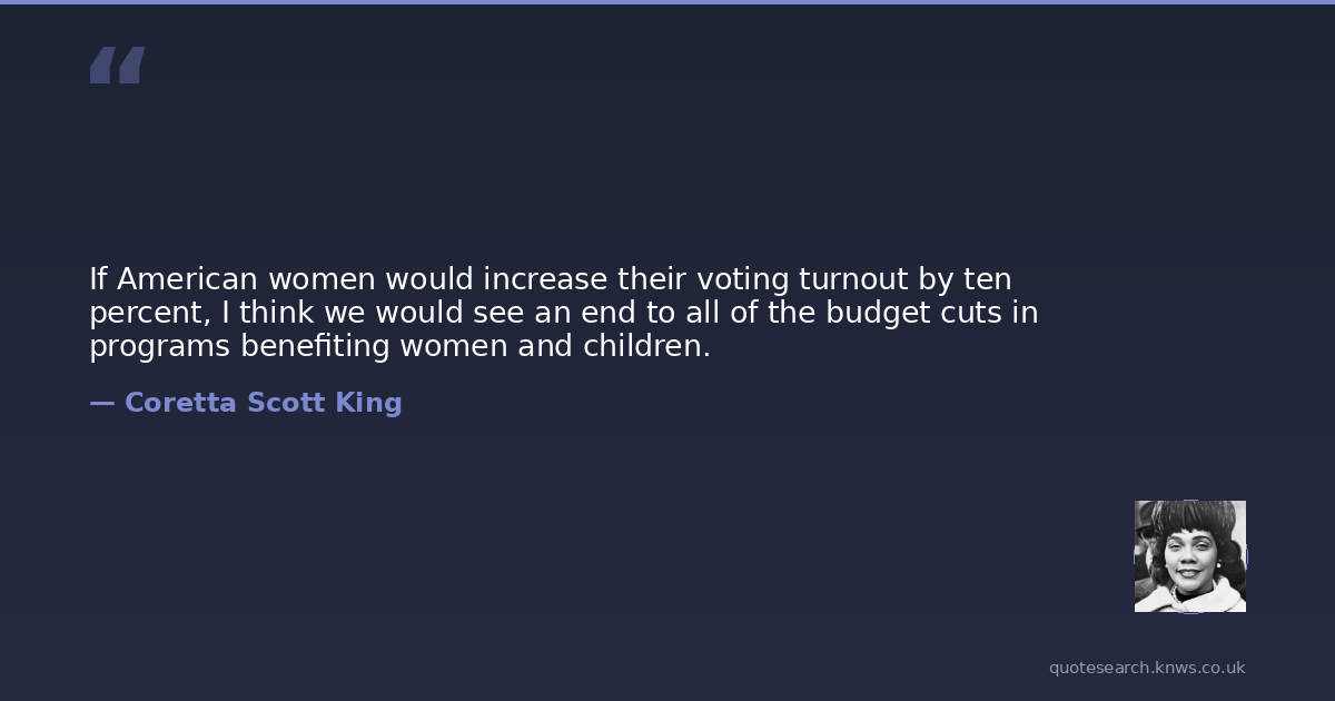 If American women would increase their voting turnout by ten percent, I think we would see an end to all of the budget cuts in programs benefiting women and children.