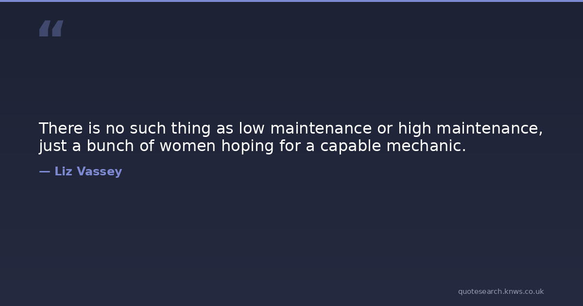 There is no such thing as low maintenance or high maintenance, just a bunch of women hoping for a capable mechanic. Mechanic High Capable Download Image Share on X Share on Facebook Copy Link