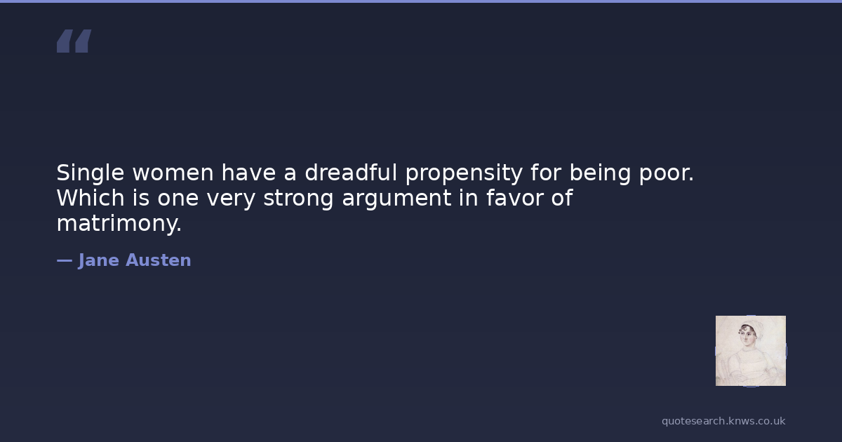 Single women have a dreadful propensity for being poor. Which is one very strong argument in favor of matrimony.