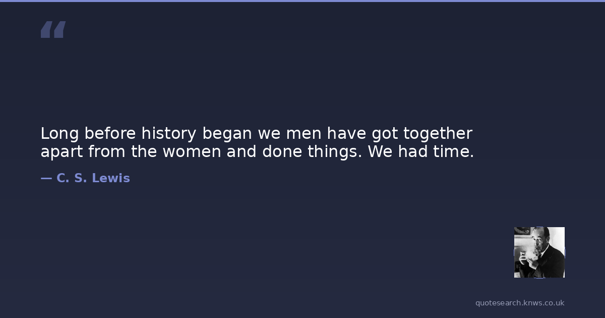 Long before history began we men have got together apart from the women and done things. We had time.