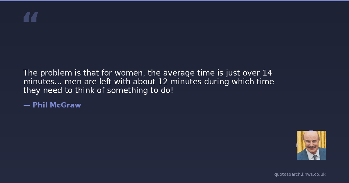 The problem is that for women, the average time is just over 14 minutes... men are left with about 12 minutes during which time they need to think of something to do!