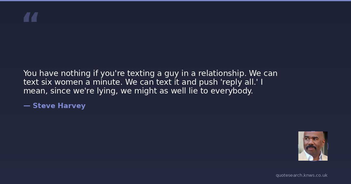 You have nothing if you're texting a guy in a relationship. We can text six women a minute. We can text it and push 'reply all.' I mean, since we're lying, we might as well lie to everybody.