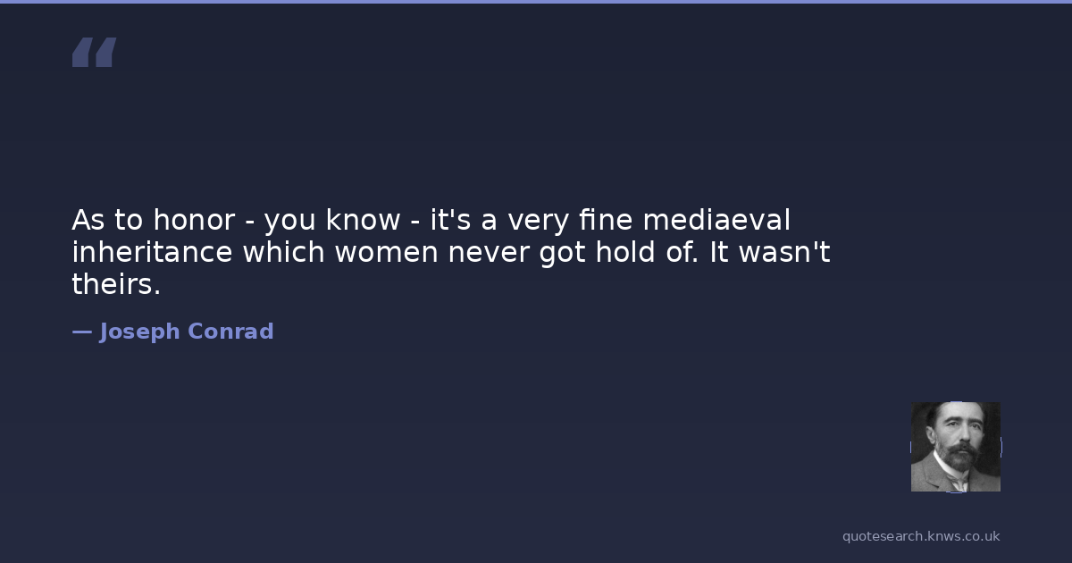 As to honor - you know - it's a very fine mediaeval inheritance which women never got hold of. It wasn't theirs.