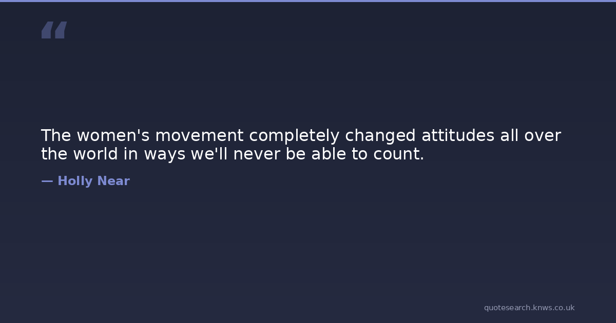The women's movement completely changed attitudes all over the world in ways we'll never be able to count. World Never Movement Download Image Share on X Share on Facebook Copy Link