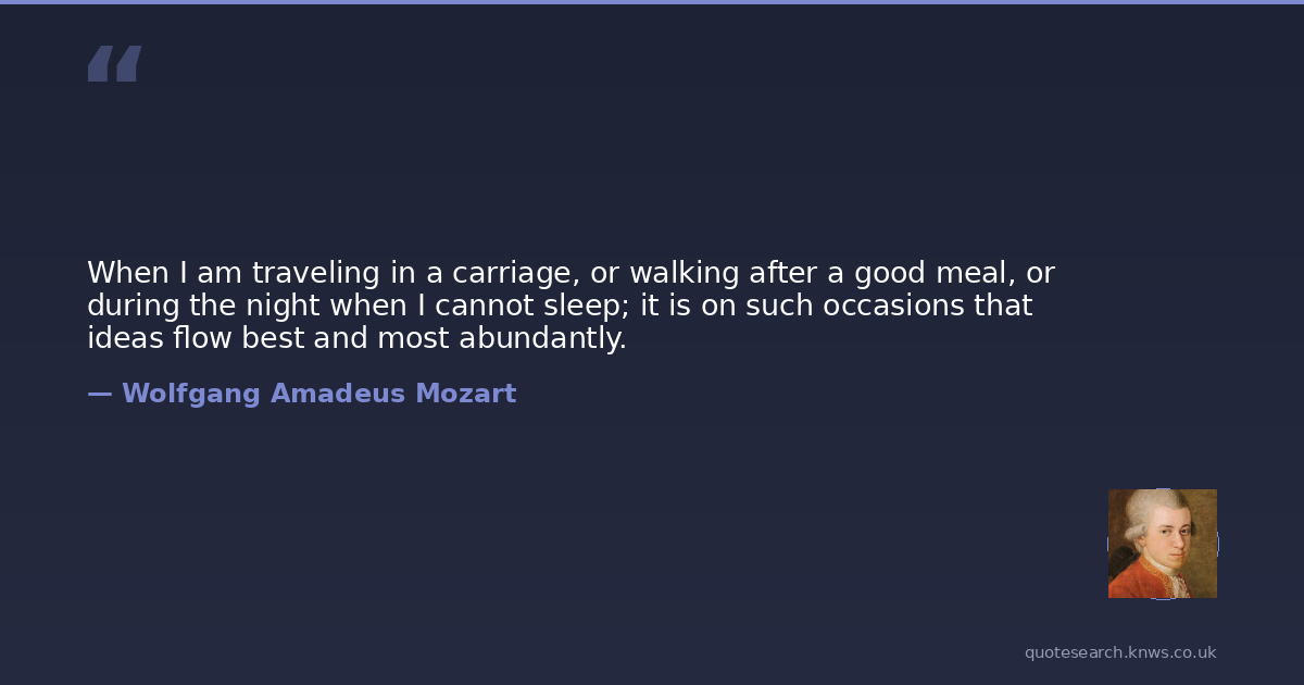 When I am traveling in a carriage, or walking after a good meal, or during the night when I cannot sleep; it is on such occasions that ideas flow best and most abundantly.